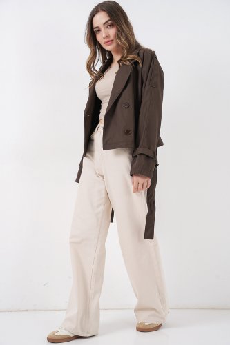 • Kemerli Kısa Trençkot 5970 AKahve