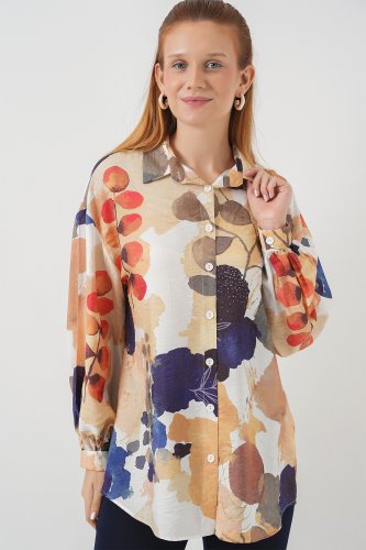 • Desenli Overize Gömlek Tunik 5971 Lacivert