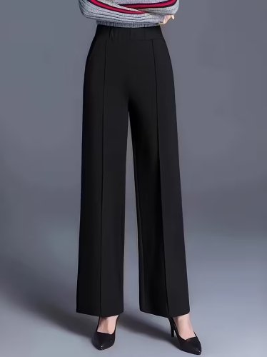 • Kadın yüksek bel önü nervürlü paçaya doğru geniş ithal krep pantolon