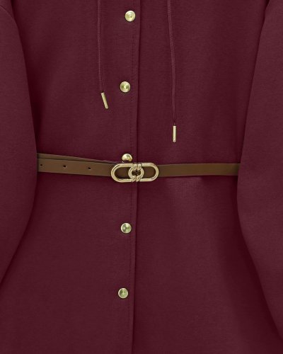 • Kapşonlu Önü Çıtçıtlı Beli Kemerli Üç İplik Sweat Kap Bordo